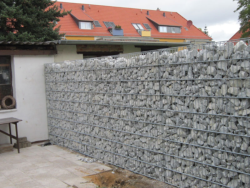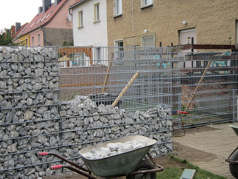Im Bau befindliche Gabionensichtschutzwand, Höhe 1,80 m, Länge 2,00 m,